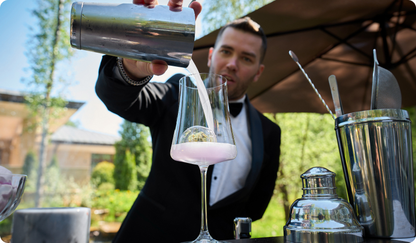Возьмет на себя все приготовительные работы и обеспечит максимально красивую подачу напитков, что приятно удивит ваших гостей.