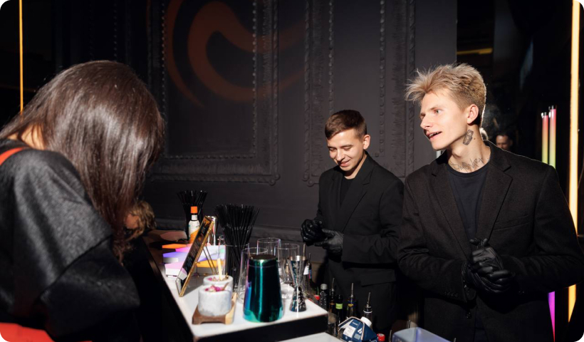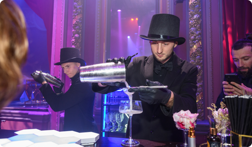 Команда MOSBAR.VIP имела честь работать на лучших столичных площадках и знает, как удовлетворить запросы даже самой изысканной публики.
